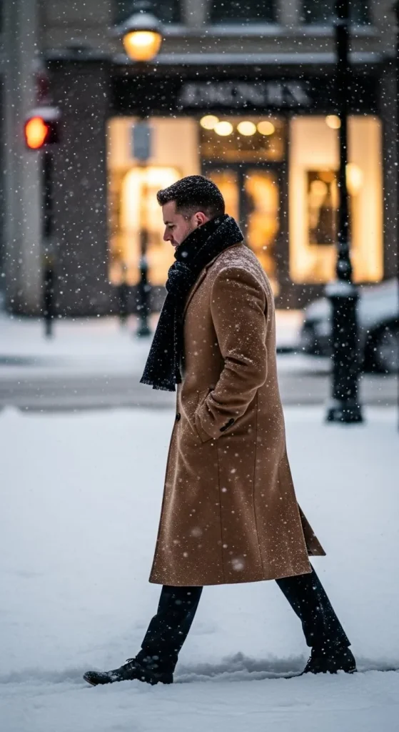 Let your outerwear do the talking. A camel or navy overcoat instantly upgrades even a plain outfit. Layer over a turtleneck or button-down shirt. It’s stylish and warm — win-win for chilly evenings.