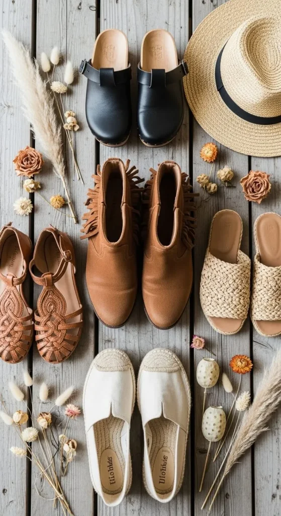 These not only complement boho silhouettes but also keep the outfit versatile enough for festivals, brunches, travel days, or casual evenings out.