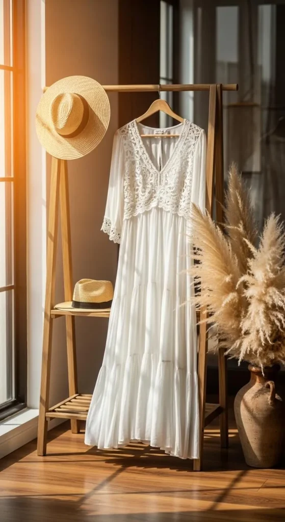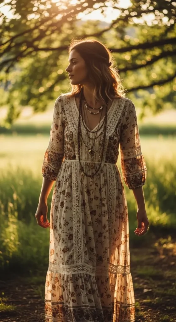 Choose fabrics like cotton, linen, chiffon, and crochet. These allow movement, texture, and that earthy, relaxed vibe.