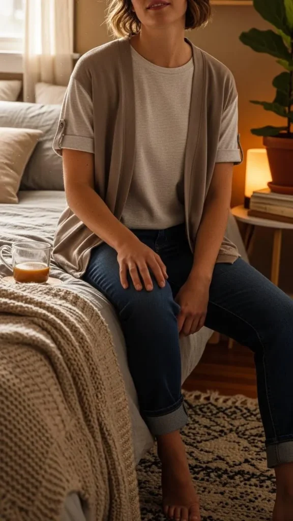 Indoor outfits look best when they feel calm and cohesive. Soft neutrals and muted tones create that “Pinterest cozy” look without trying too hard.