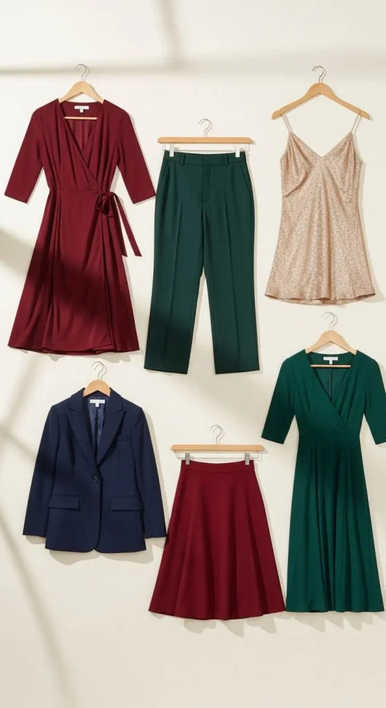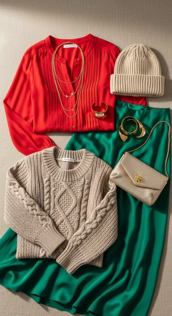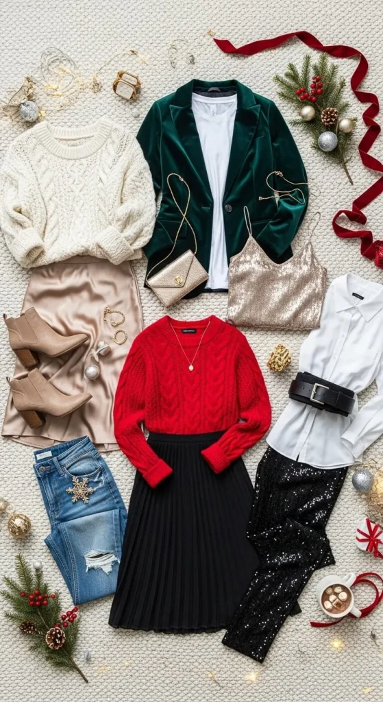 Holiday dressing doesn’t have to mean flashing lights, novelty jumpers, or head-to-toe glitter. You can look festive, elegant, and modern — without feeling like you’re wearing a costume. The secret is choosing pieces that hint at the season, not scream it.