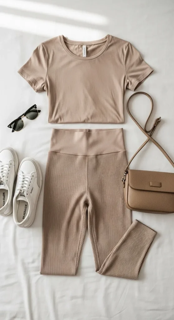 - A monochrome outfit in beige, charcoal, or black