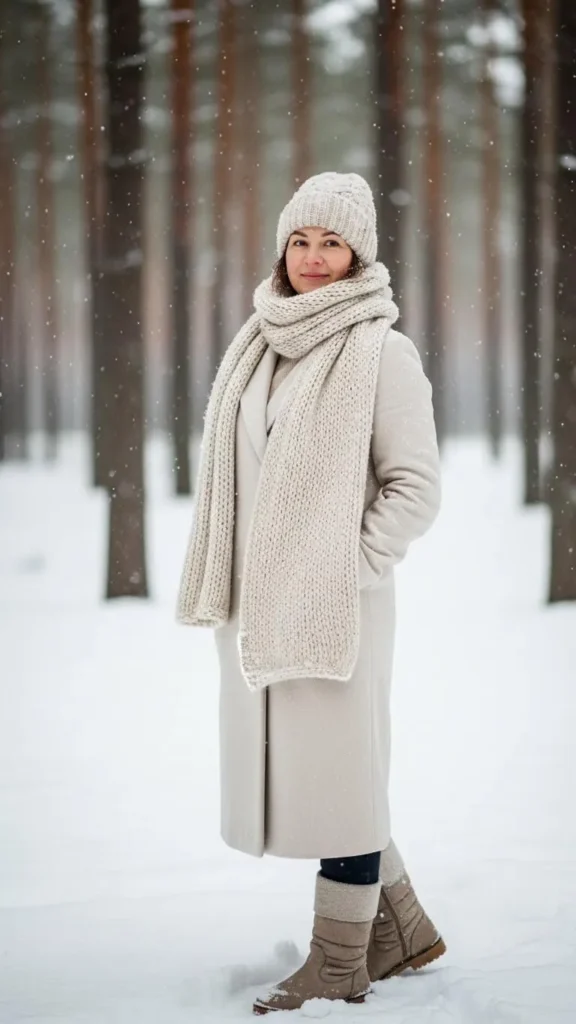 If you prefer neutrals like white, beige, and grey, add texture (like wool or cable-knit) so the outfit doesn’t blend into the background.