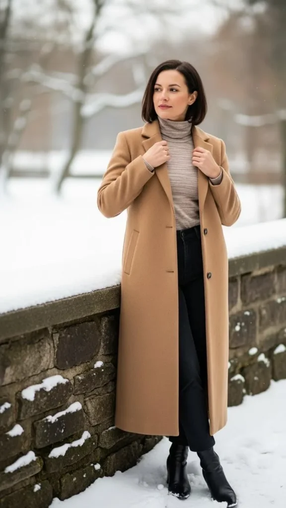 - Outer layer: Coat, puffer jacket, or stylish wool trench.