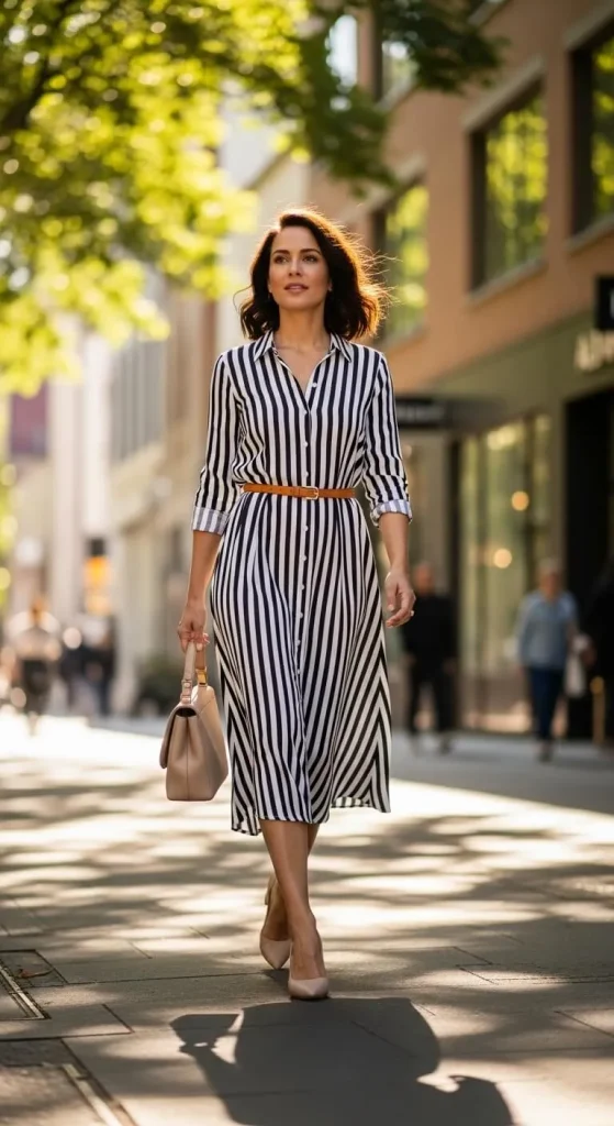 Dark colors are famous for their slimming magic because they absorb light and visually smooth out curves. But don’t feel limited to black—deep navy, charcoal, chocolate brown, or forest green can have the same effect while adding more personality to your look.