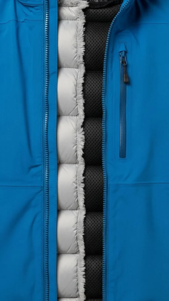 - Lightweight down or synthetic puffer layers