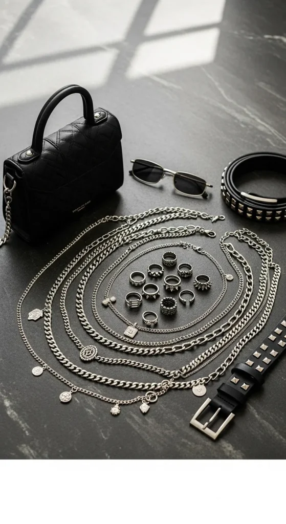 Edgy accessorising isn’t about layering tons of jewellery—it’s about picking the right accents.