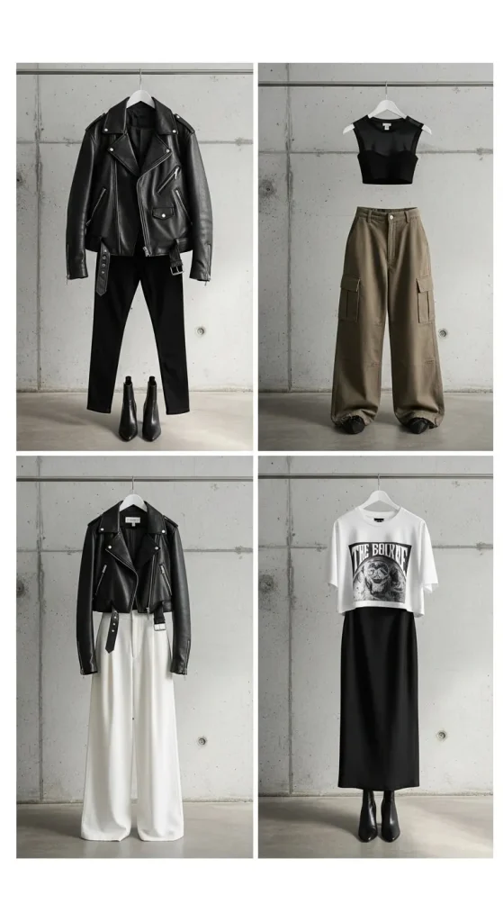 Edgy outfits shine when they combine different materials. This keeps your outfit visually interesting without adding fuss.