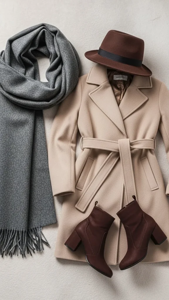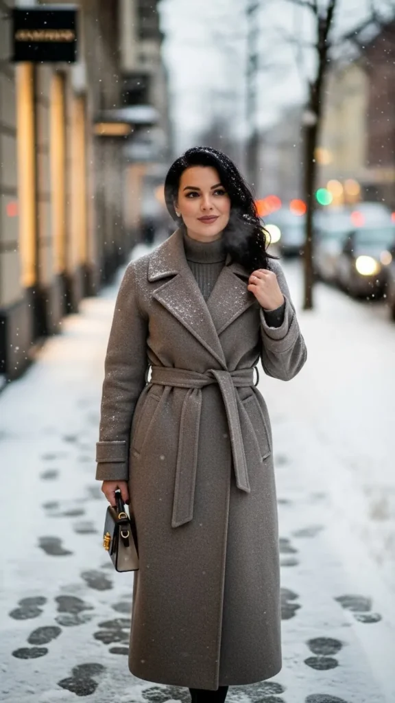 - Belted coats: Cinch at the waist to add definition and shape.