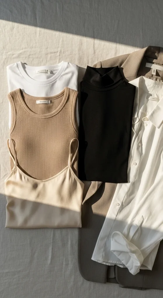 Layering under your blazer should be clean and minimal for that put-together effect.