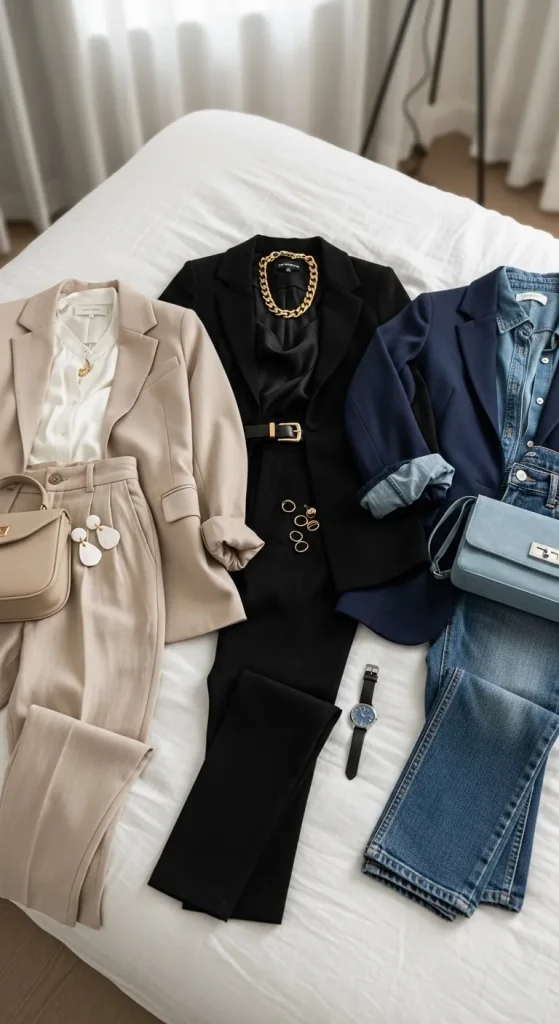 Accessories are the final polish that turns a basic blazer-and-jeans outfit into a full look.