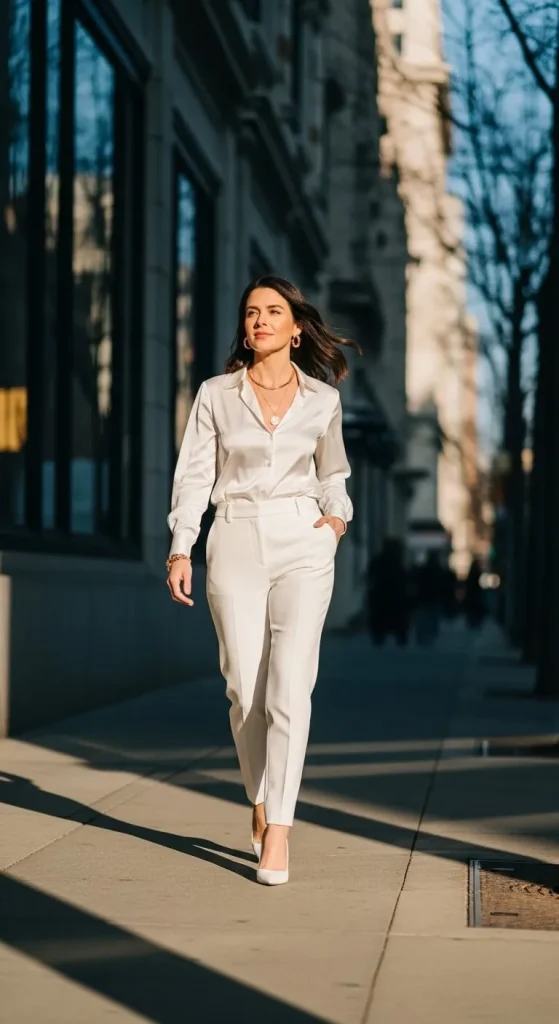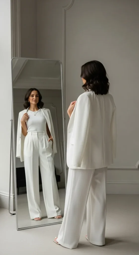 All-white outfits demand good tailoring. Anything too baggy or too tight can look messy quickly.