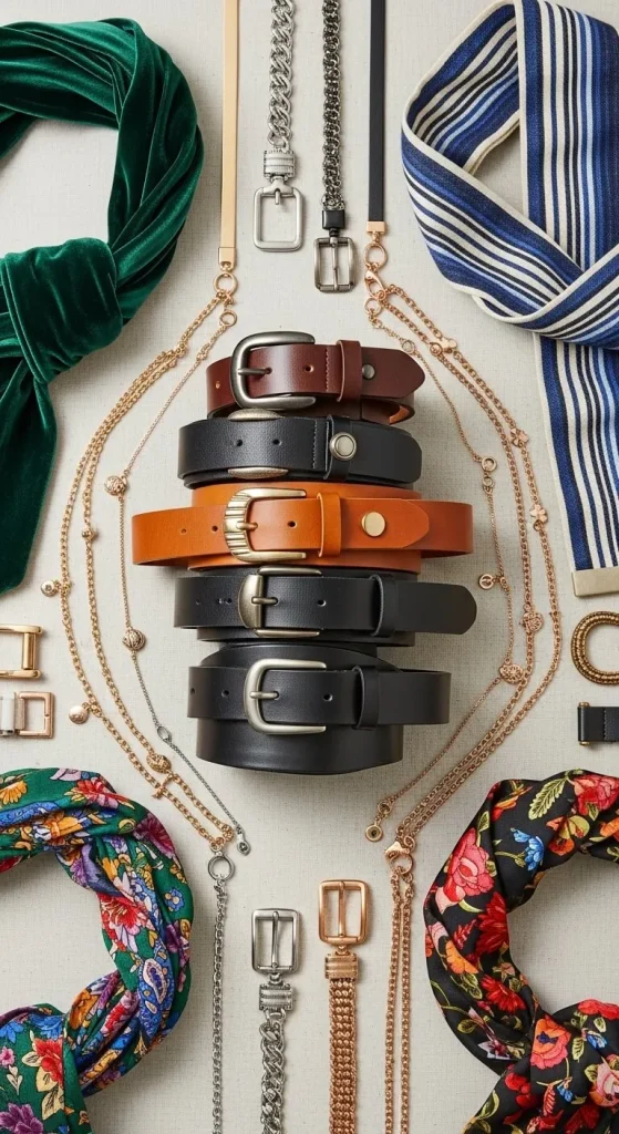 • Keep proportions balanced — a wide belt suits flowy outfits, while thin belts complement fitted looks.