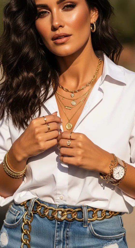 • Add a chain belt over layers: Perfect for giving an edgy touch to oversized shirts or blazers.