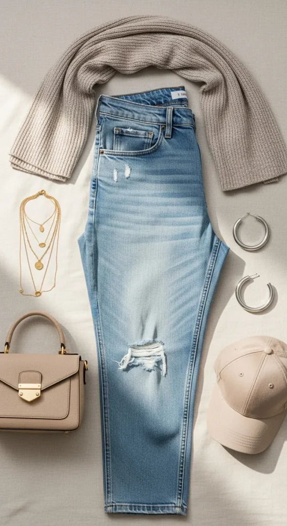 Boyfriend jeans shine best when the rest of your outfit feels simple and clean. Accessories should enhance—not overpower—the laid-back vibe.