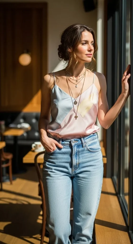Even a small detail like a dainty necklace or a soft-coloured purse can make the outfit feel lighter and more intentional.