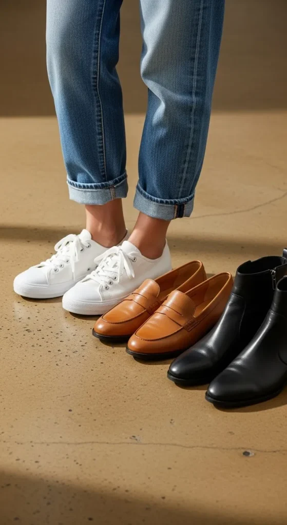 Your shoes can completely transform the vibe of boyfriend jeans.