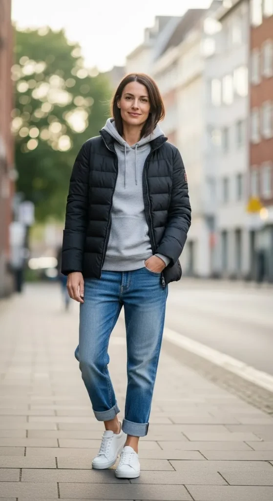 Boyfriend jeans pair beautifully with hoodies, sweatshirts, and sporty tops for a casual, weekend-ready look. It’s effortless, youthful, and perfect for errands, coffee runs, or chill days.