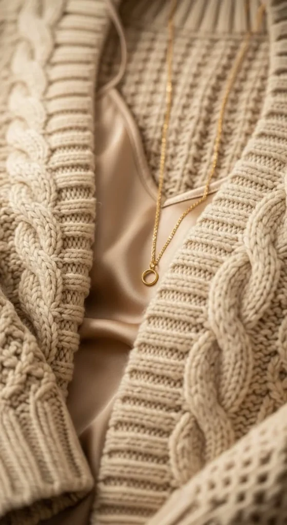 - Pair chunky knits with smooth fabrics like satin or silk for contrast.