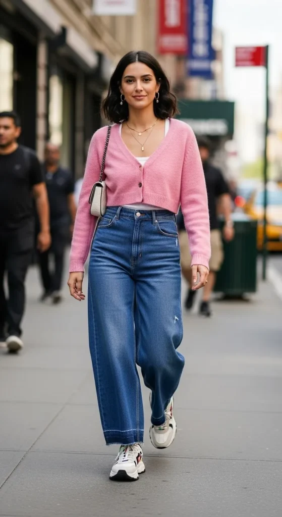 - Cropped cardigans: These look amazing with high-waisted jeans, skirts, or trousers to highlight your waistline.