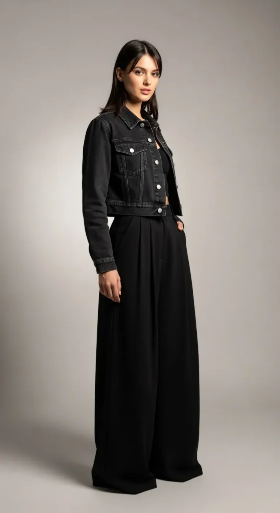 Even a great cropped jacket can look off if the fit is wrong. Aim for a length that sits between your ribcage and natural waistline. If it’s too short, it can feel costume-like; too long, and you lose the cropped effect.