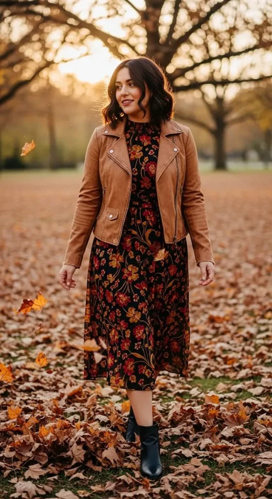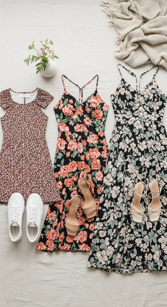 Mixing textures keeps your floral dress outfits fresh and intentional.