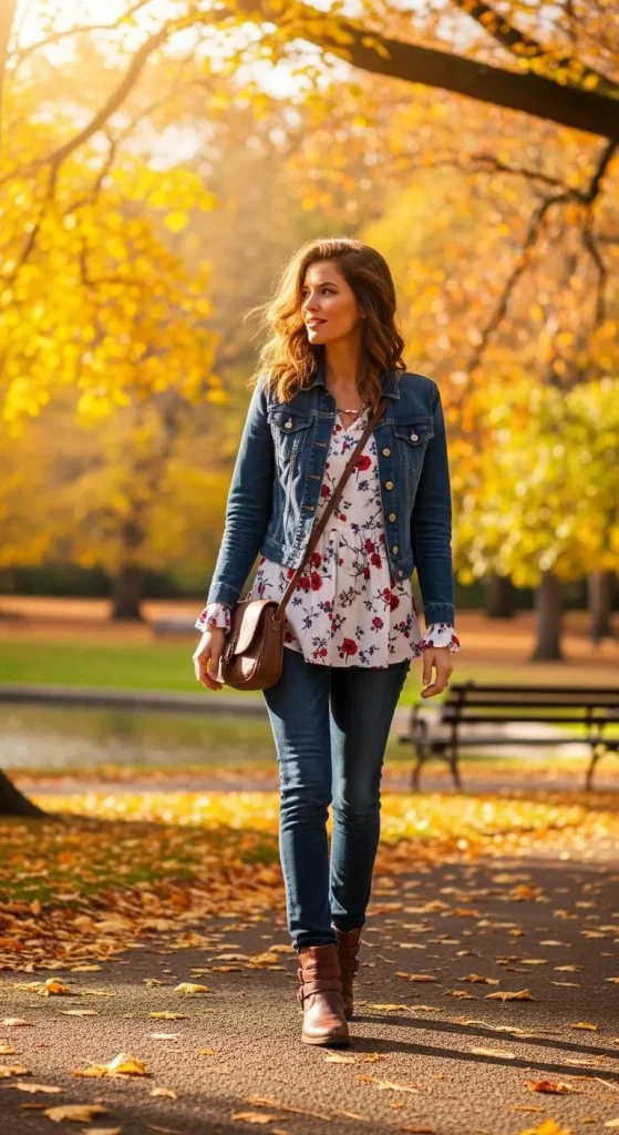 Denim and leather are two of the best fabrics to pair with floral prints when you want to tone down the “girly” factor. The contrast between the rugged texture of denim and the softness of floral prints creates a balanced, laid-back look.