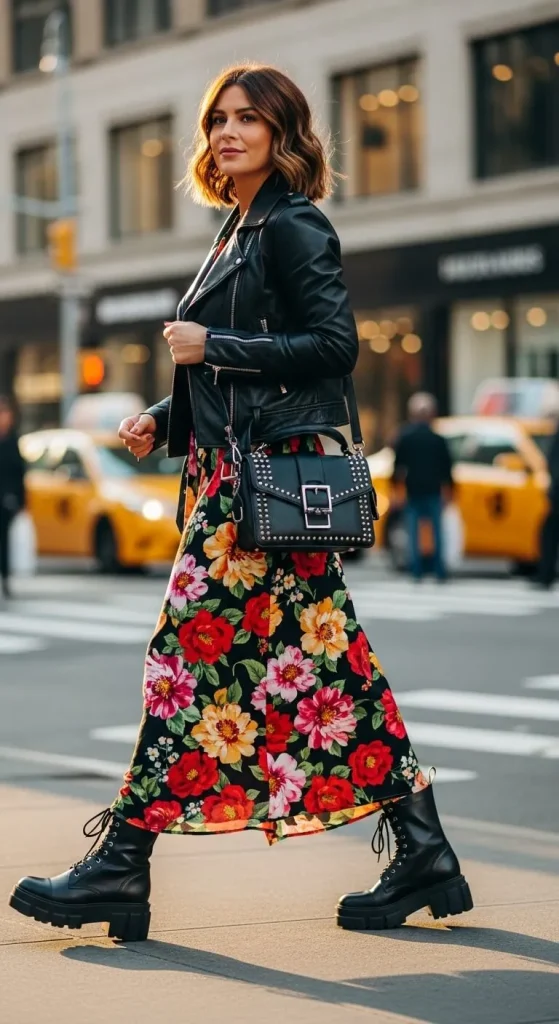 One of the easiest ways to toughen up floral prints is by pairing them with edgy accessories. Leather jackets, ankle boots, and chunky jewelry can all add a sharp contrast to the softness of florals, balancing out the femininity.