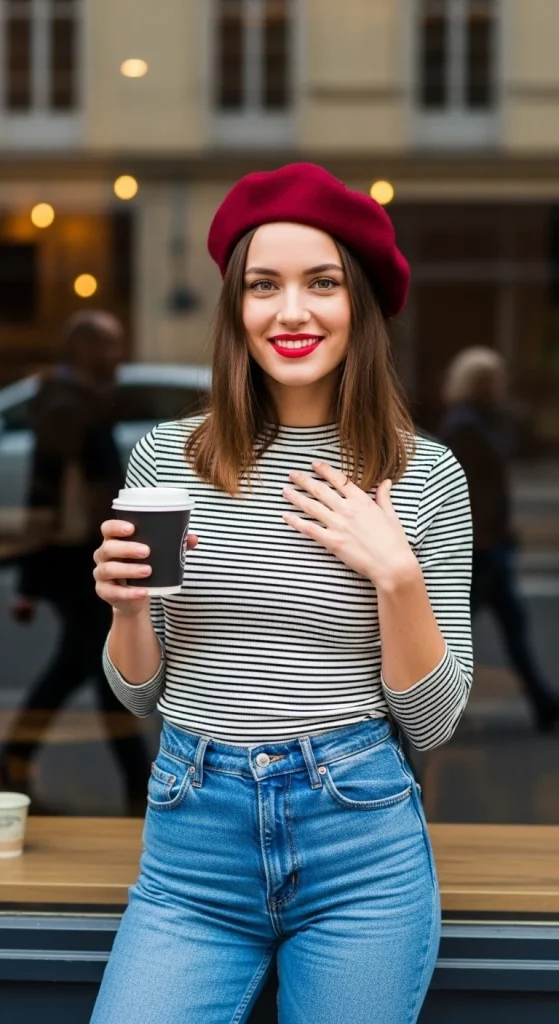 • A crisp white shirt half-tucked into straight-leg jeans for a Parisian-inspired look.