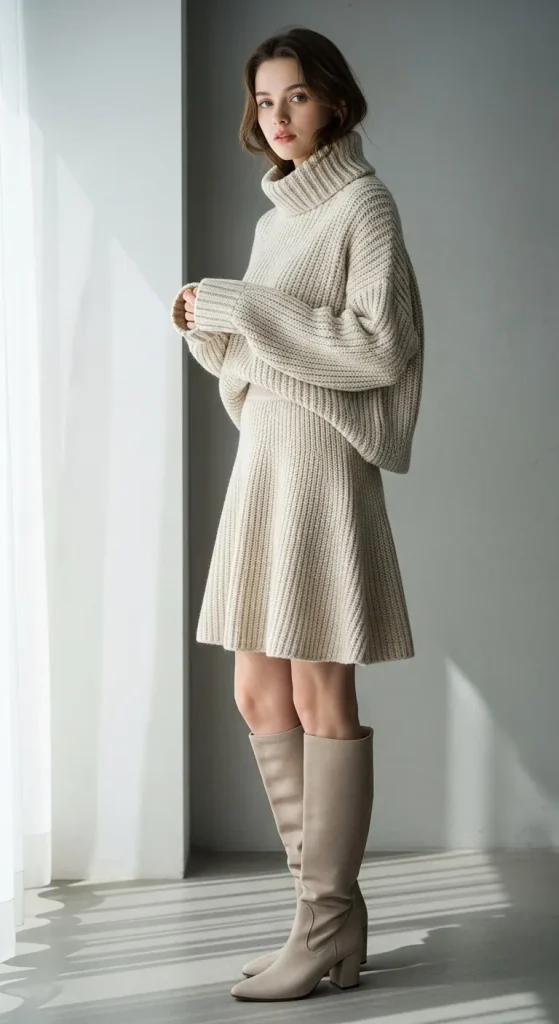 - Pair an oversized turtleneck with leggings or relaxed denim.
