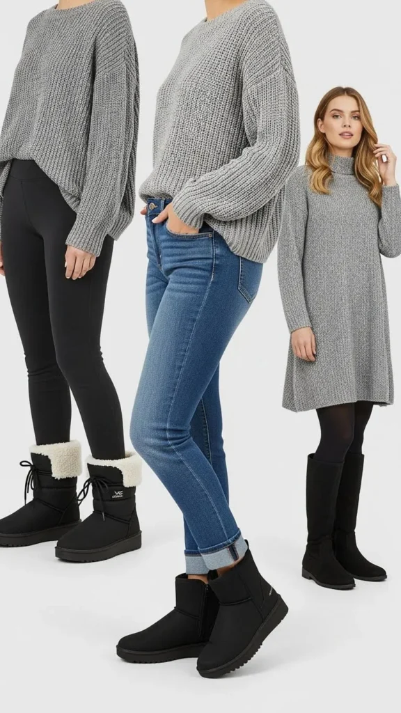 The best part? You don’t need a huge wardrobe. A few layering tips and the right pairings can make your winter boots look good with everything from leggings to long coats. Let’s break it down into simple, wearable steps.