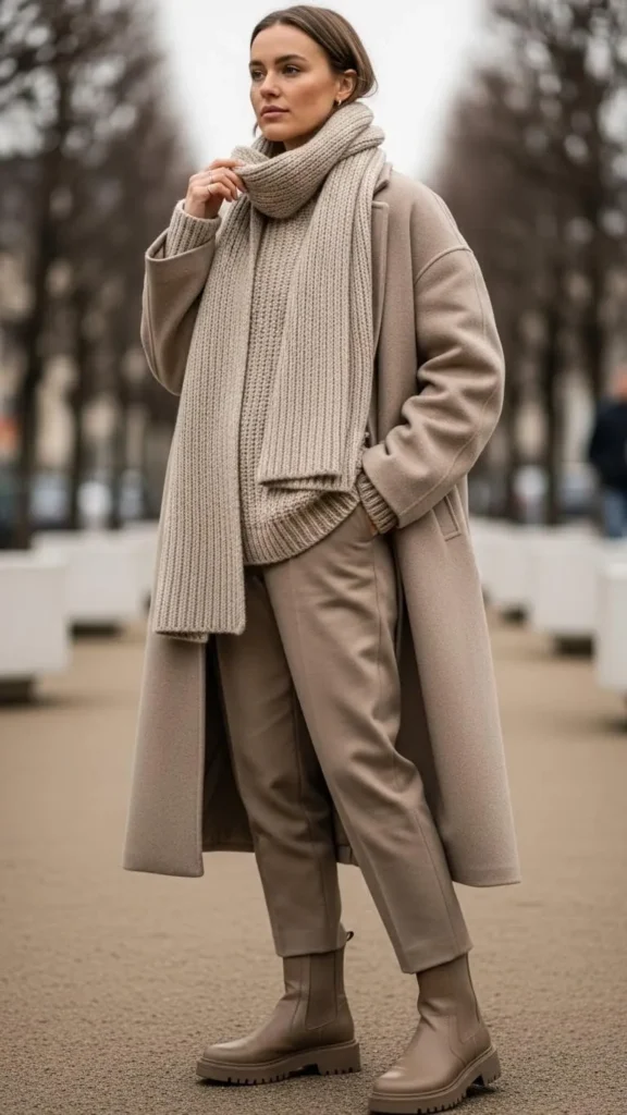 Style tip: Softer neutrals often look more elevated than high-contrast shades during winter months.