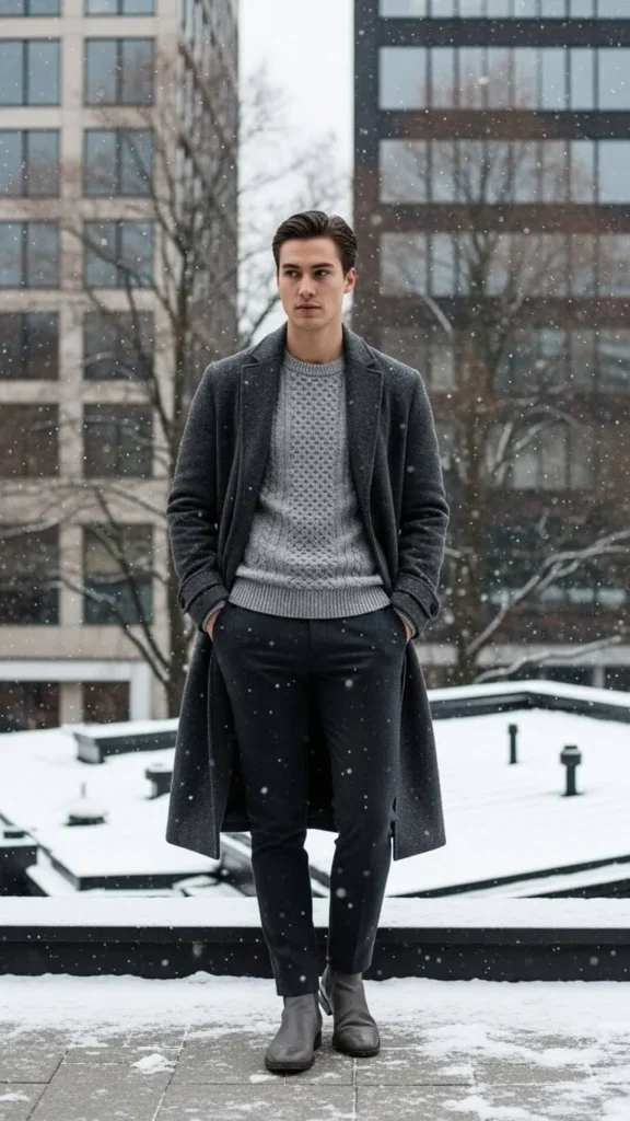 In winter, your coat often defines your entire outfit. A strong outerwear choice can elevate even the simplest monochrome look.
