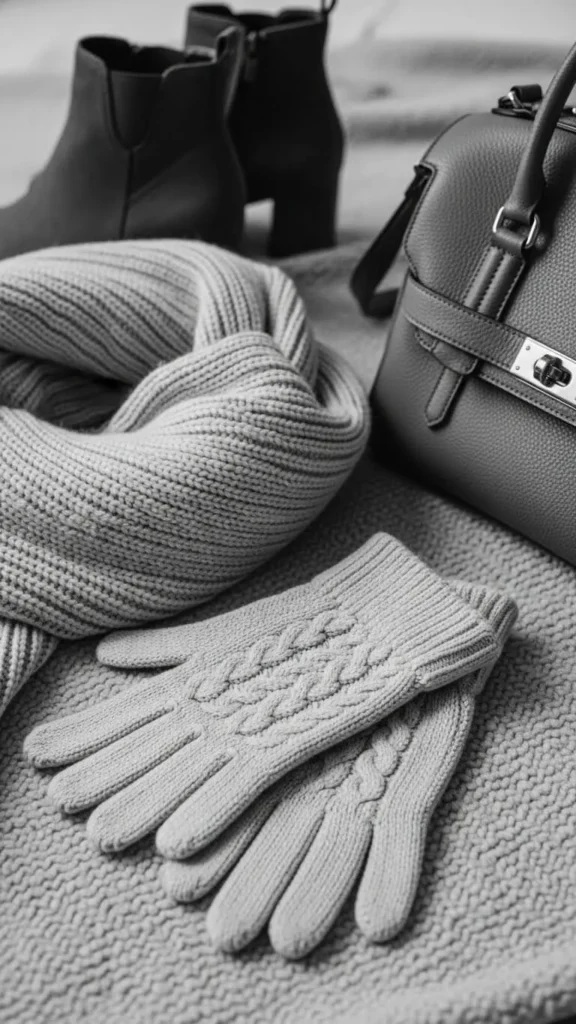 Keeping accessories within the same color family maintains the monochrome effect while adding polish.