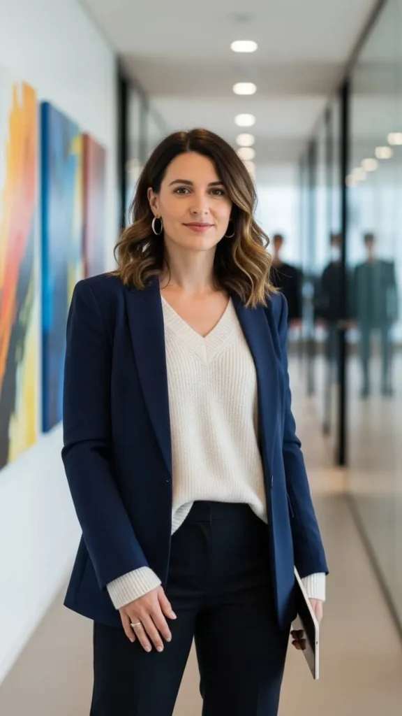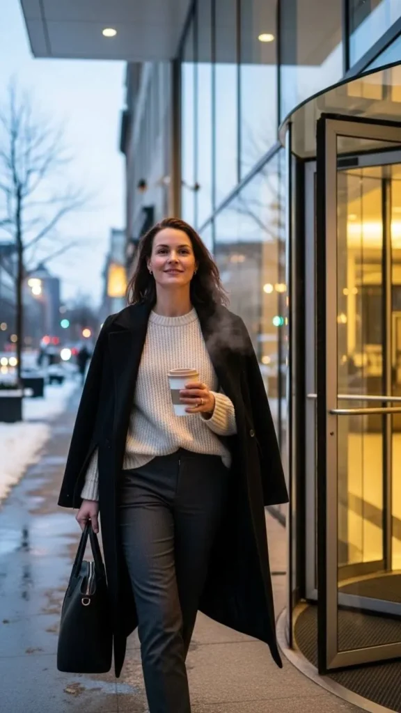 Knitwear is the backbone of winter office casual style. It’s warm, comfortable, and easy to dress up or down.