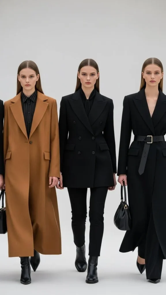 - Structured wool coats for clean lines