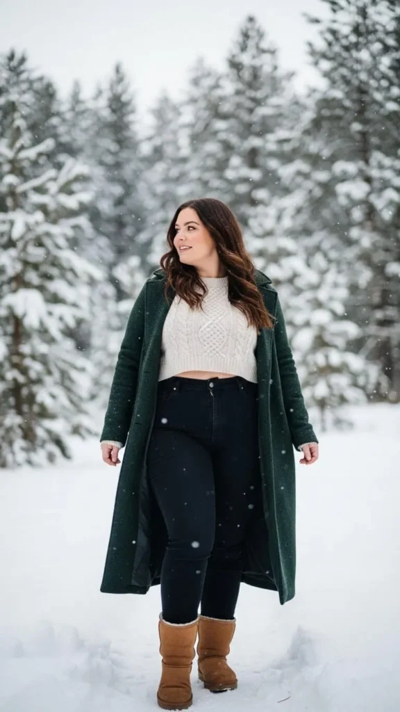 Curvy bodies look incredible in winter silhouettes that provide balance. Aim for combinations that mix fitted pieces with relaxed or structured elements.