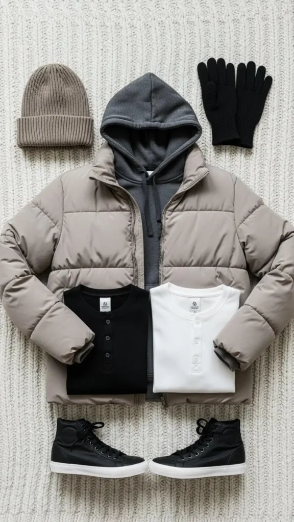 Layering is the secret to looking put together while staying warm. Even with a limited budget, teens can stack everyday basics in a way that looks intentional and stylish.