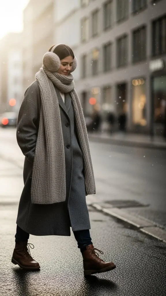 This works especially well when the rest of your outfit is minimal. Earmuffs add texture and warmth near the face, which draws attention upward.