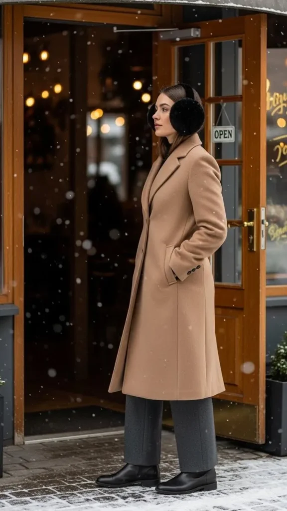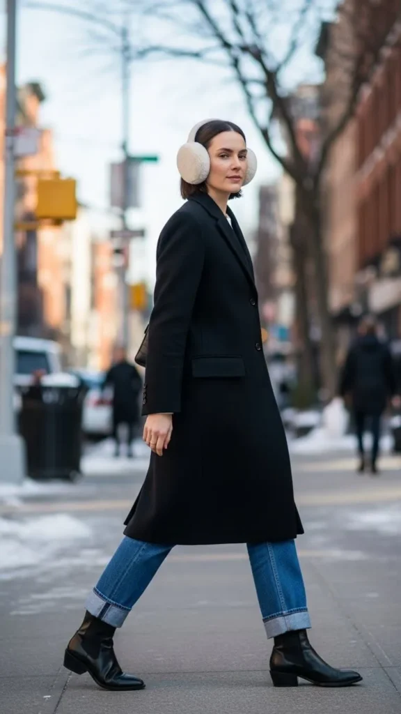 Avoid overly sporty jackets unless you’re leaning into a casual look. Structured outerwear makes earmuffs feel like a styling choice, not just cold protection.