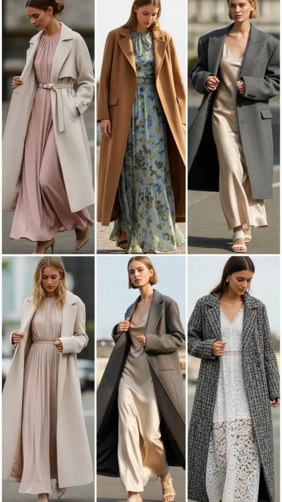 Pair Long Coats With Dresses for a Soft, Feminine Look