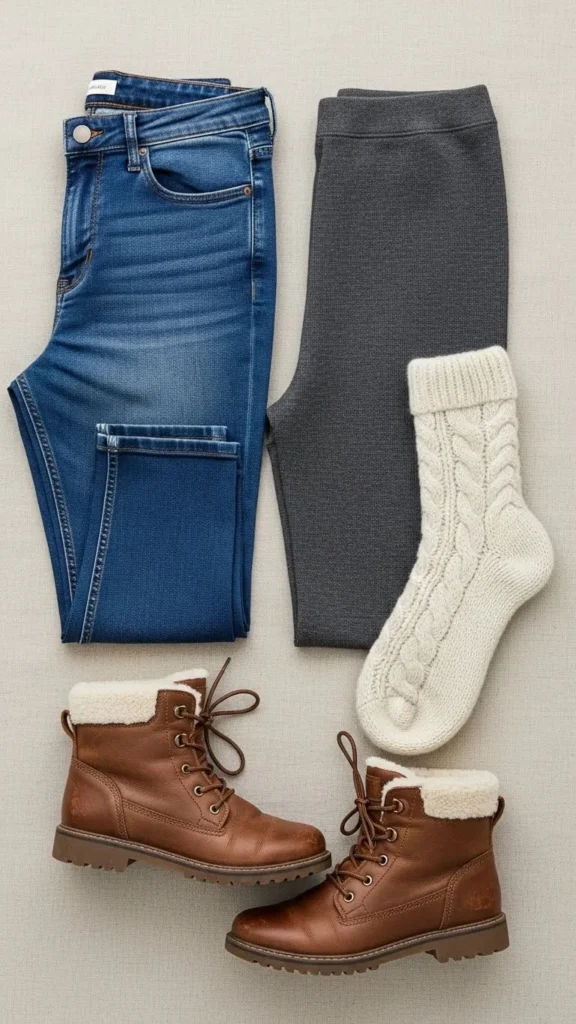 Avoid super-thin flats or low-cut shoes—they let cold air creep in fast.