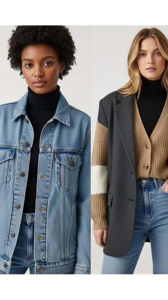 Oversized turtlenecks soften the “overdressed” vibe and pair beautifully with denim or leggings.