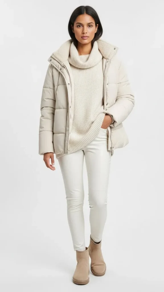 Bonus tip: When layering whites, vary the textures. Smooth knits, wool coats, and ribbed fabrics create dimension and prevent the outfit from looking too “matchy.”