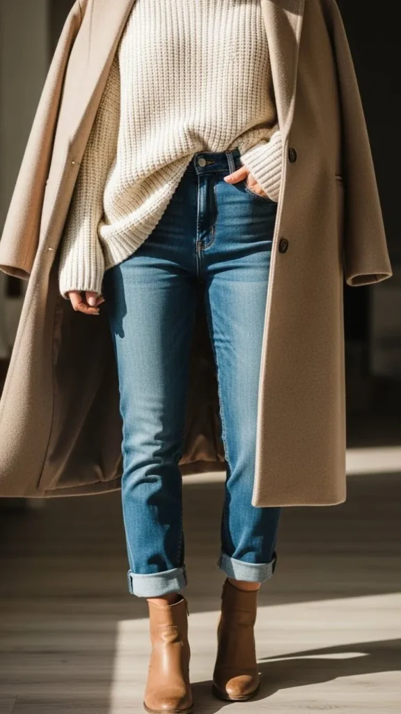 Layering adds depth—but too many bulky layers can make things look messy. The goal is sleek layers under or over your sweater.