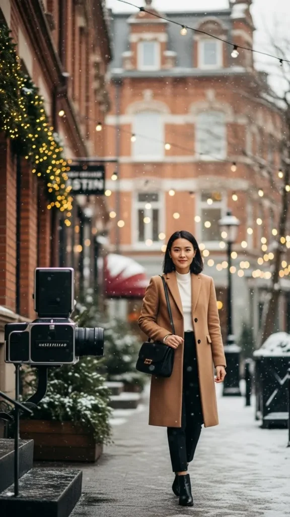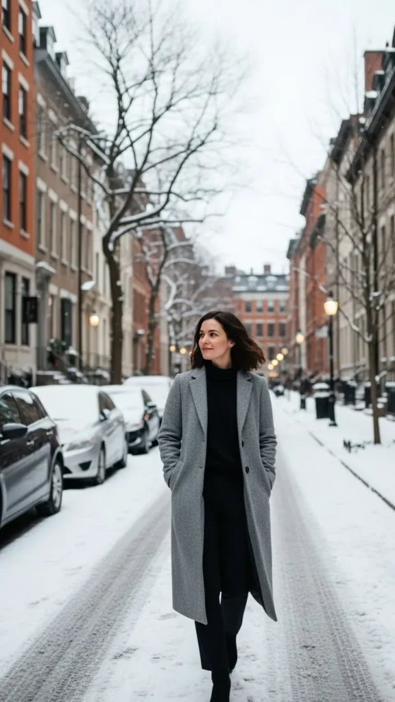 A slim coat paired with a muted scarf and gloves offers practical warmth and neatness. Choose gloves that fit well to maintain a seamless look. Simple gloves and scarves are typically affordable, and can be washed to stay fresh longer.