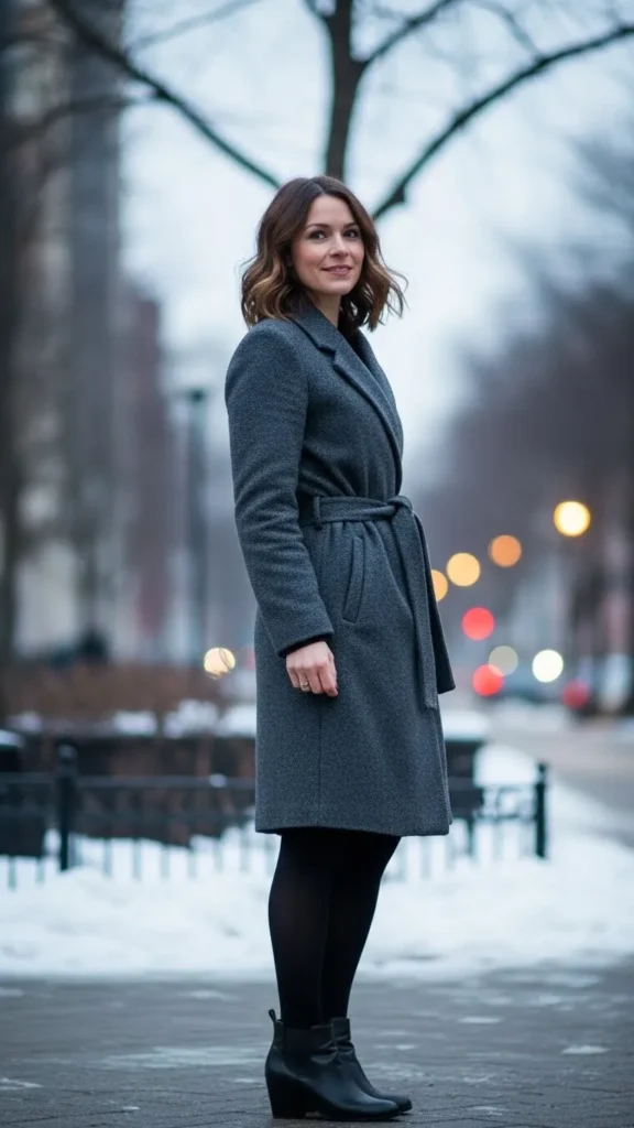 Keeping your palette simple creates an instant polished look. Grab a wool coat in camel, grey, or black for warmth and style. Team it with a sweater and pants in similar shades. Sticking to one color family minimizes decision fatigue and looks expensive. Wool coats can be found at thrift stores or affordable retailers—look for good fit rather than brand names. Add a pair of leather boots in the same neutral to anchor the outfit cohesively.