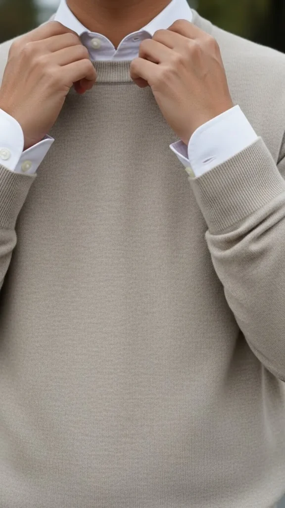 9. Button-Up Shirt under a Neutral Sweater