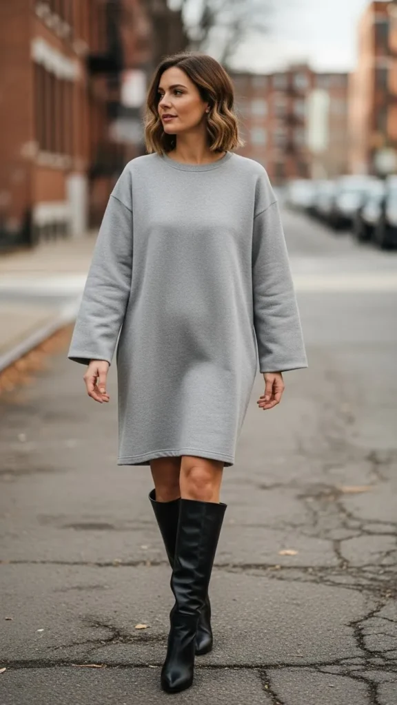 16. Long Sweatshirt Dress with Knee-High Boots