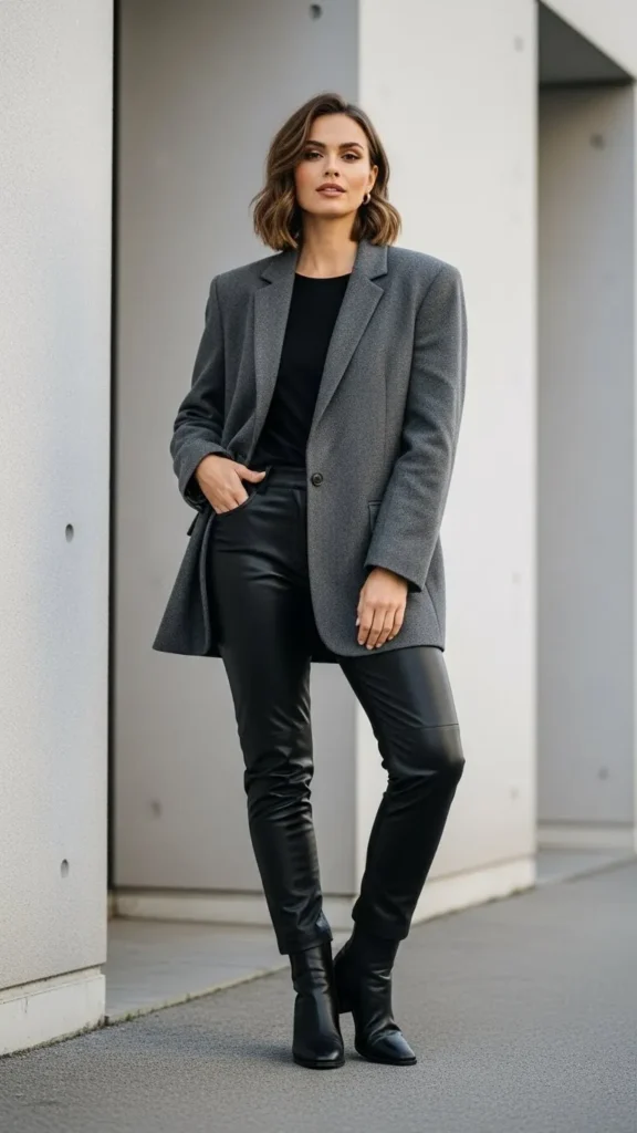 4. Oversized Blazer with Leather Pants